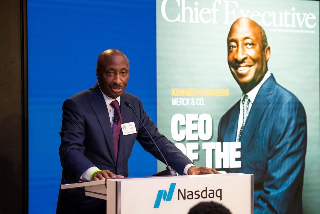 In late October, Ken Frazier was honored at a gala dinner in New York City at the Nasdaq Marketsite. Receiving the award from his peer CEOs, he made the following remarks.